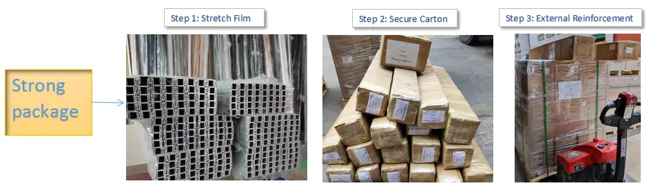 JE siempre se centra en la calificación del producto, desde la materia prima de aluminio y plástico hasta la línea de producción de extrusión, desde el control de calidad de las muestras hasta el control de producción en masa, desde un paquete fuerte perfecto hasta un servicio de todo el corazón.