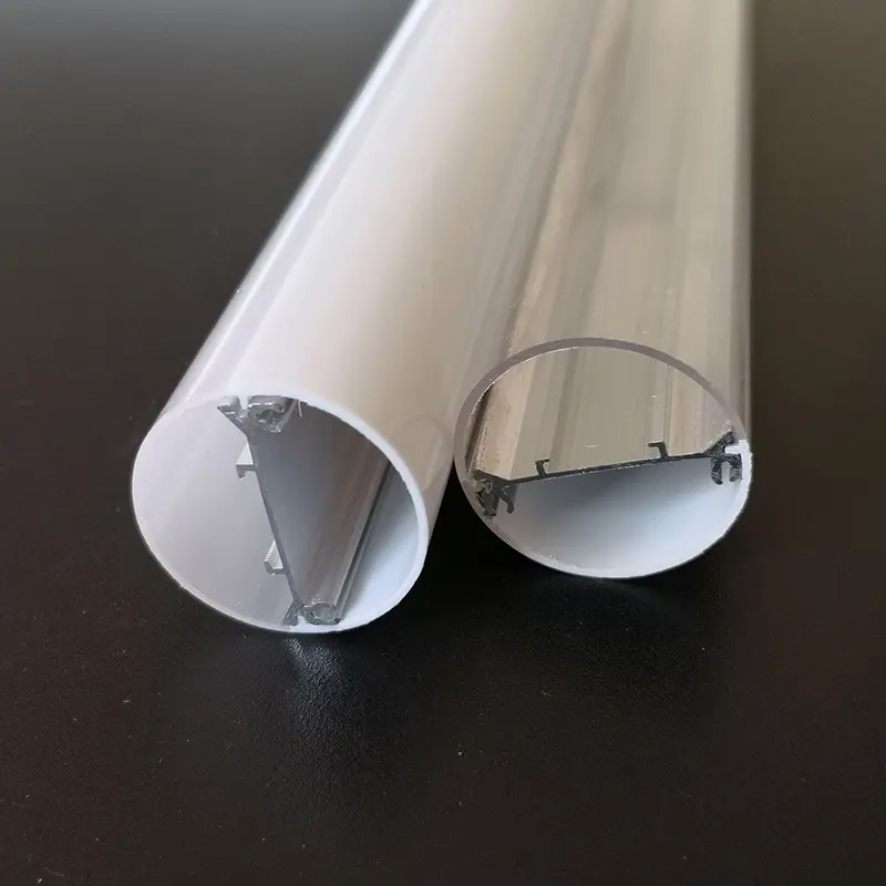 El JE-27 es una carcasa de tubo LED de plástico T8 estándar de nuestra empresa. Su característica distintiva es su carcasa totalmente plástica, dividida en dos secciones: un fondo blanco, una porción no luminosa y una porción emisora de luz disponible en colores opalescentes o transparentes. El tubo está construido internamente con extrusiones de aluminio, acomodando PCB de hasta 12 x 1 mm. Si este tamaño es adecuado para su proyecto LED Fly Killer existente, podemos proporcionar una solución profesional de vivienda LED Fly Killer basada en su diseño. Este diseño asegura que la luz UVA de 365 nm pueda penetrar adecuadamente en el difusor y al mismo tiempo evitar que la carcasa sea amarillenta.